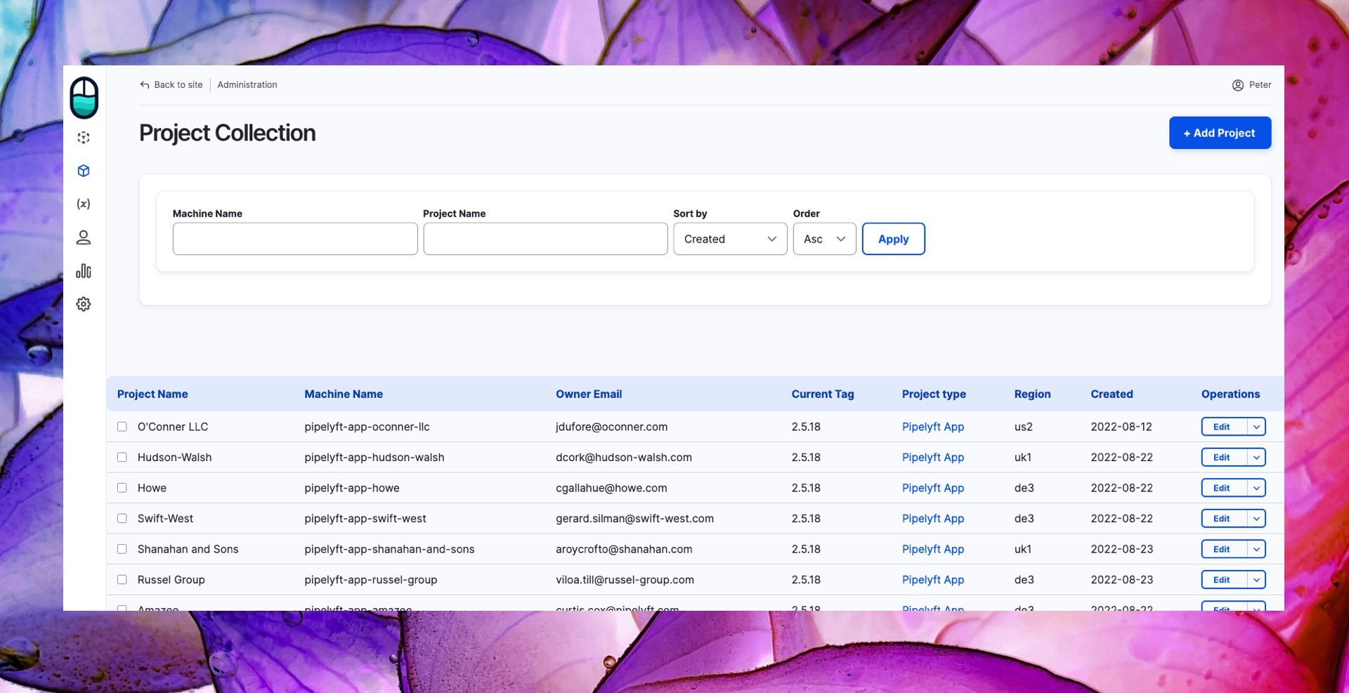 Without oversight and the ability to control all running instances of the Pipelyft application en masse, the Pipelyft team would soon encounter an administrative bottleneck that would be a massive drain on development resources.